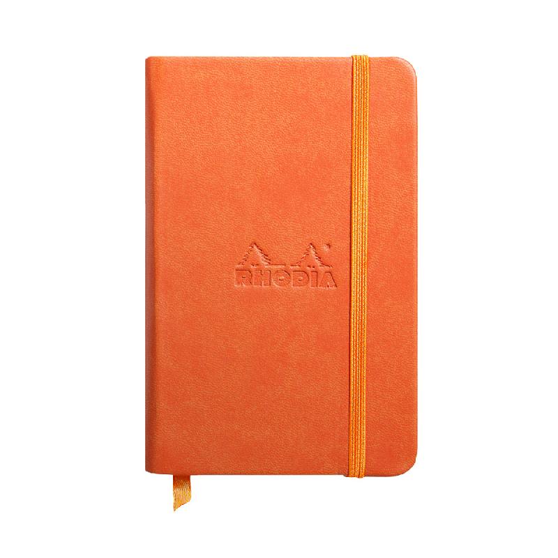 RHODIARAMA CARNET REMBORDÉ RIGIDE 9X14 CM 192 PAGES UNI PAPIER IVOIRE 90G FERMETURE ÉLASTIQUE - TANGERINE - LOT DE 2