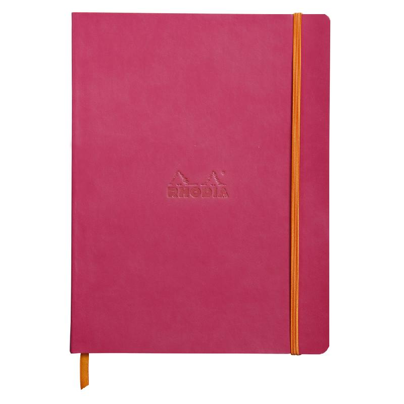 RHODIARAMA CARNET SOUPLE 19X25 CM 160 PAGES LIGNÉ PAPIER IVOIRE 90G FERMETURE ÉLASTIQUE - FRAMBOISE