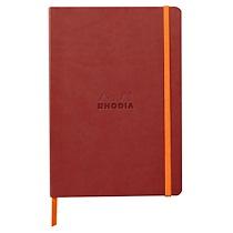 Couverture souple en simili cuir italien, logo Rhodia embossé, fermeture élastique orange.