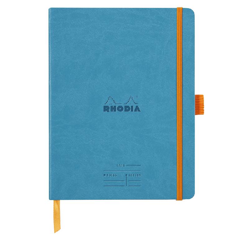 RHODIARAMA MEETING A5+ 160 PAGES MICROPERFORÉ PAPIER BLANC 90G AVEC ÉLASTIQUE + P-STYLO - TURQUOISE