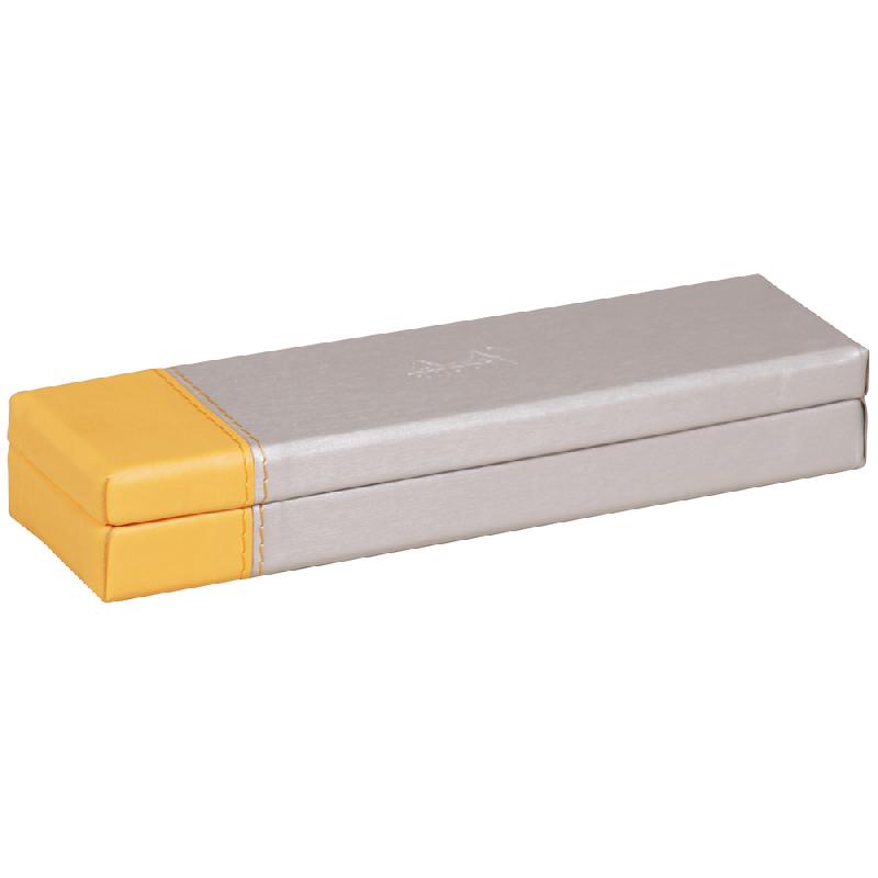 En simili cuir italien aux finitions soignées : logo Rhodia embossé et d'élégantes surpiqûres sellier orange.