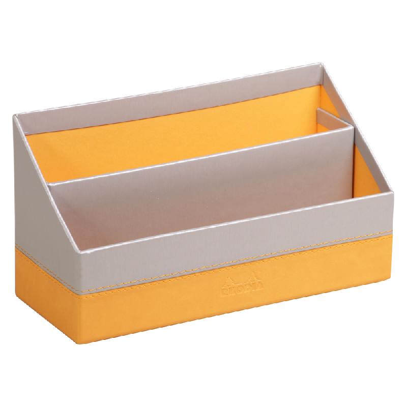 En simili cuir italien aux finitions soignées : logo Rhodia embossé et d'élégantes surpiqûres sellier orange.
