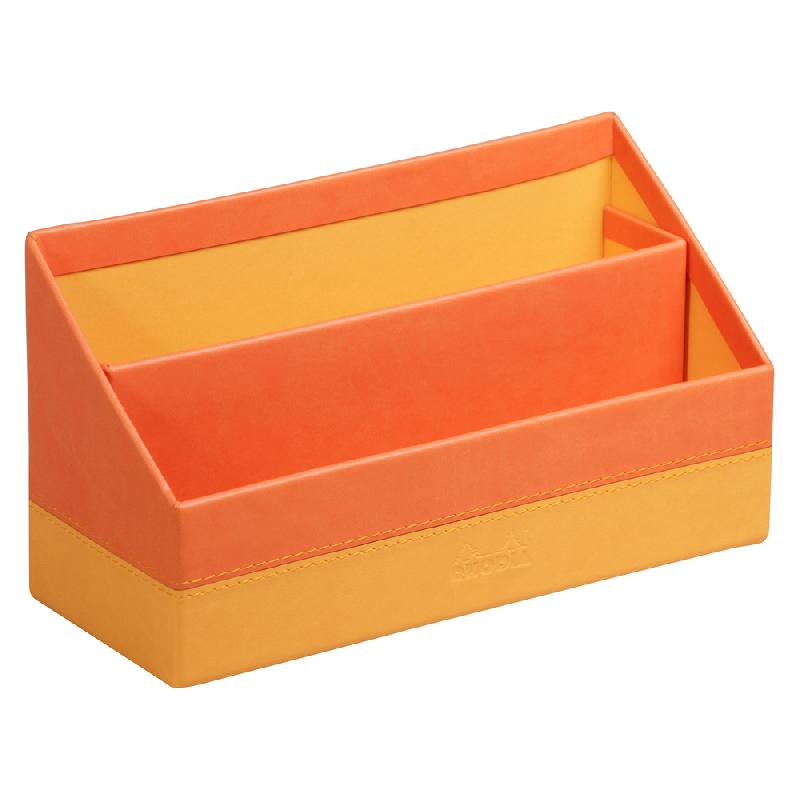 En simili cuir italien aux finitions soignées : logo Rhodia embossé et d'élégantes surpiqûres sellier orange.