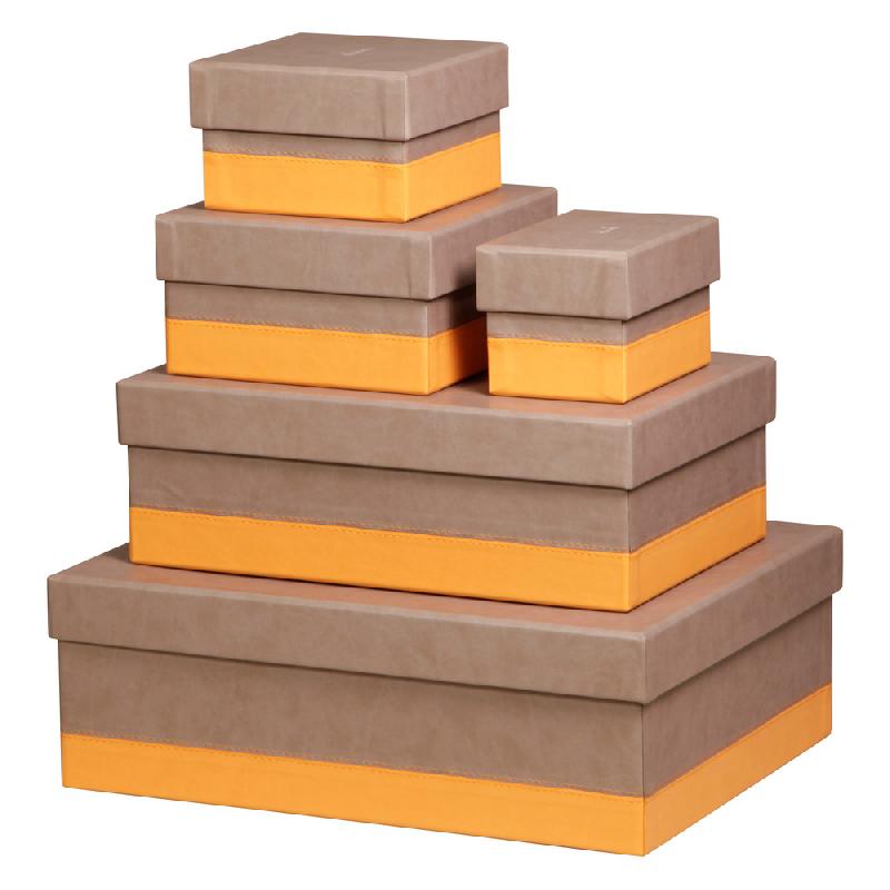 RHODIARAMA SET 5 BOÎTES GIGOGNES SIMILI CUIR ITALIEN 44X34X16 CM - TAUPE