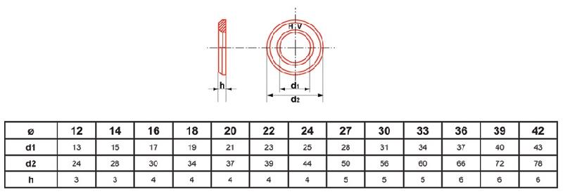 Descriptif du produit :Caractéristiques techniques :Rondelle traitée 32-35 HRC (300 HV).Finition : brut.Norme :DIN 6916