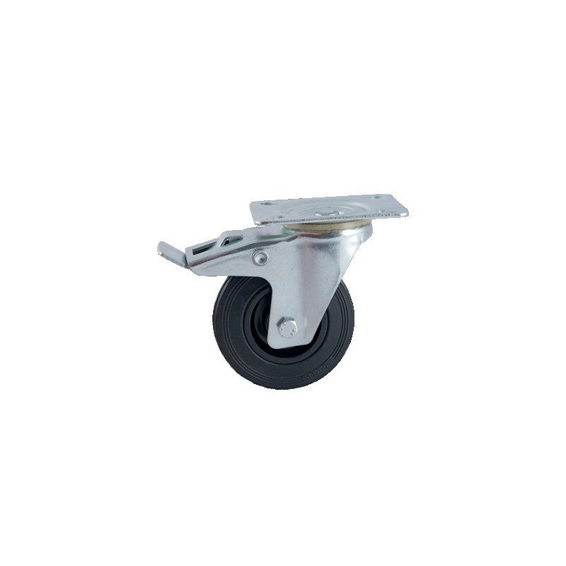 ROULETTE D100MM CAOUTCHOUC NOIR PLATINE PIVOTANTE AVEC FREIN - AVL - 508842O