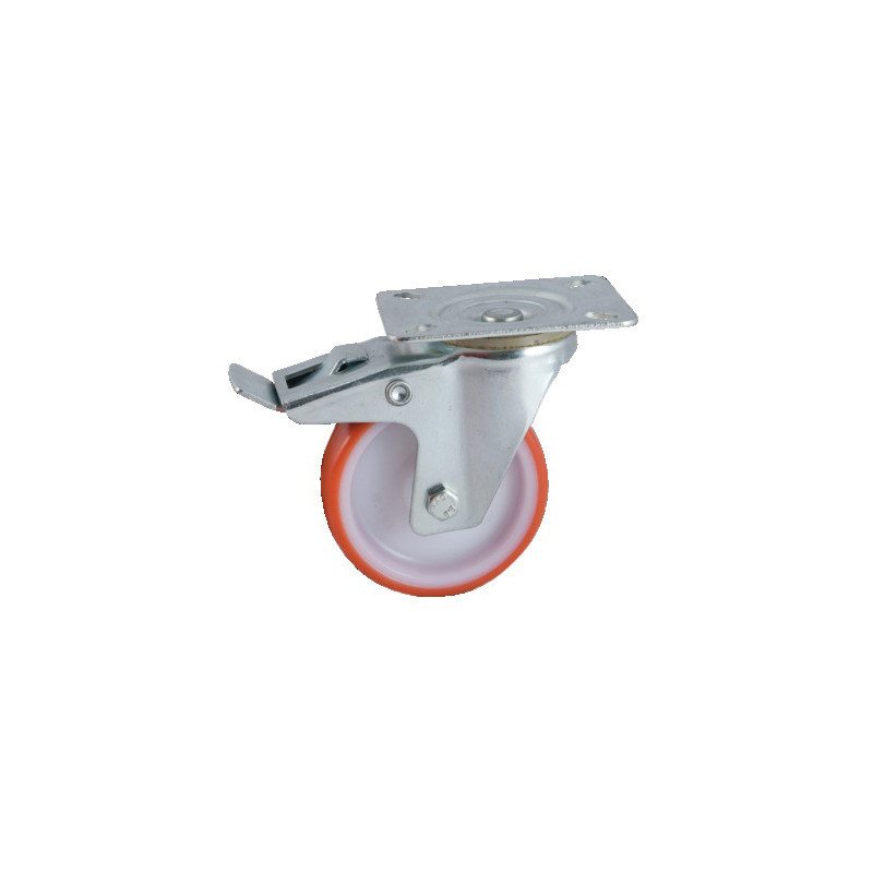 ROULETTE D125MM POLYURÉTHANE ROUGE PLATINE PIVOTANTE AVEC FREIN - AVL - 504843O