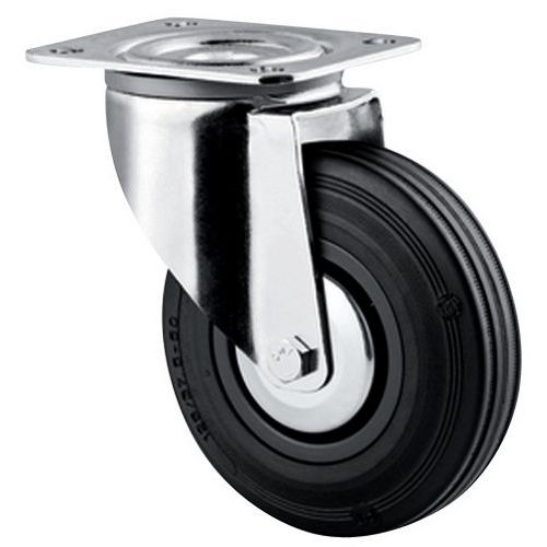 Roulette pivotante à monture platine Force 40 à 205 kg Bandage largeur : 34 mm Charge maxi : 70 kg Coloris : Noir Corps de roue matériau : Polypropylène Déport : 27 mm Diamètre Ø : 80 mm Entraxe trous fixation : 80 x 60 mm Frein : non Garantie client : 3 ans Hauteur hors tout : 108 mm Modèle : Roulette pivotante Platine largeur : 80 mm Platine longueur : 105 mm Poids du produit : 0.3 kg Roue/roulette : Roulette Roue/roulette diamètre (Plage) : 1 100 mm Roue/roulette force (Plage) : 1 100 kg Trou de fixation Ø : 9 mm Type de bandage : Caoutchouc Type de fixations : À platine Type de moyeu : À rouleaux Usage : Manutention intérieur Roulette pivotante avec fourche en acier résistante à la corrosion. Avec 2 couronnes de billes et un axe démontable à partir de 80 mm de diamètre. Non tachante grâce à sa couche d'usure en caoutchouc semiélastique. Roulette pivotante à monture platine, Charge maxi: 70 kg, Ø: 80 mm, Roue/roulette: Roulette, Roue/roulette force (Plage): 1 100 kg, Roue/roulette diamètre (Plage): 1 100 mm, Type de bandage: Caoutchouc, Modèle: Roulette pivotante, Type de moyeu: À rouleaux, Bandage largeur: 34 mm, Hauteur hors tout: 108 mm, Entraxe trous fixation: 80 x 60 mm, Coloris: Noir, Déport: 27 mm, Frein: non, Poids: 0.3 kg, Trou de fixation Ø: 9 mm, Type de fixation: À platine, Usage: Manutention intérieur, Corps de roue matériau: Polypropylène, Platine largeur: 80 mm, Platine longueur: 105 mm