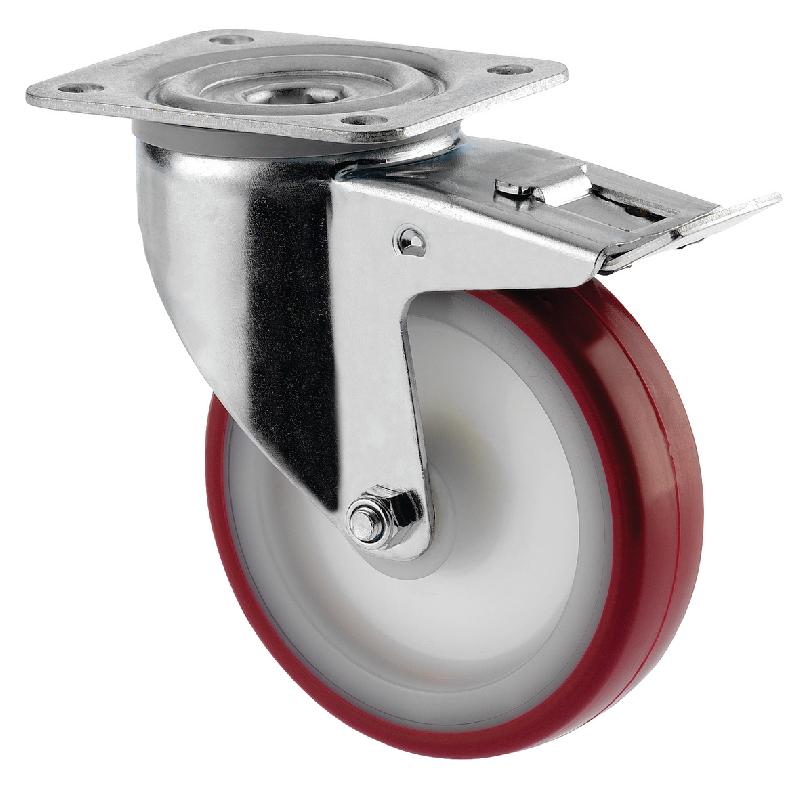 Descriptif du produit :Roulette pivotante à platine avec frein - Force 150 kg Ø : 100 mm