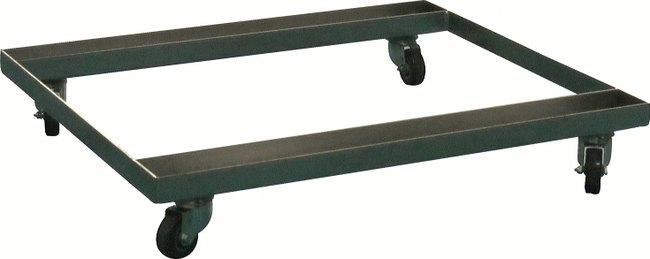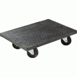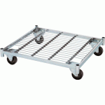 Descriptif du produit :Dimensions hors tout : 585 mm L x 520 mm l x 98 mm H.Écartement intérieur : 400 mm. 4 roulettes pivotantes Ø 50 mm à bandage nylon.Peinture époxy grise très résistante aux rayures.Livré monté.Poids : 3.5 kg.