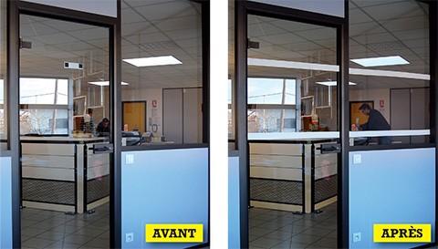 - Ce ruban adhésif blanc vous permet de mettre en évidence des parties vitrées. 10m x 5 cm. La visualisation des vitrages est obligatoire lorsqu'ils sont transparents et se situent à hauteur d'homme dans les parties communes et les axes de circulation des établissements recevant du public. (ERP) Ils sont particulièrement utiles lorsqu'il n'y a pas nécessité de procéder à un recouvrement complet ou quasi complet du vitrage. L'usage d'une vitrophanie permettra de contraster vos vitres Couleur du ruban adhésif : Blanc Utilisation : La vitrophanie se place sur les portes d'entrée, portes automatiques, cloisonnement de bureaux, hôpitaux, aéroports, écoles, ateliers, gares, musées. Facile à poser: Vitrophanie à mettre sur la face intérieure, à l'eau savonneuse. La surface à coller doit être exempte de poussière, de graisse ou de tout autre contaminant. Entretien du vitrage : Solution à base d'eau savonneuse, 30 jours après la pose. Les produits de nettoyage qui pourraient rayer le film sont à proscrire. Ne pas appliquer de stickers ou tout autre adhésif sur le film. Pour le repérage et la mise aux normes de vos surfaces vitrées, Il faut disposer les deux vitrophanies horizontales(d'une largeur de 5 cm), respectivement à 1,10 m et 1,60 m de hauteur. Comment poser un adhésif de signalisation sur des vitres ou portes vitrées