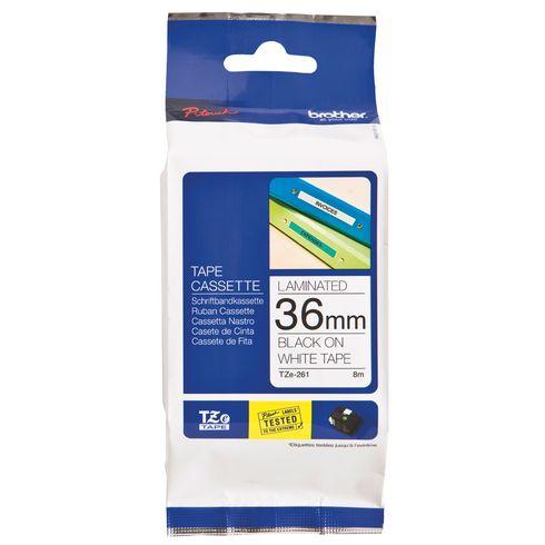 Descriptif du produit :- Ruban laminé pour utilisation intérieure ou extérieure : très haute résistance à l'eau, aux températures, à l'abrasion, aux produits chimiques. Largeur 36 mm, longueur 8 m. Fond blanc, écriture noire. Compatible avec les titreuses Brother : P-Touch 3600, 9700PC, 9800PCN.