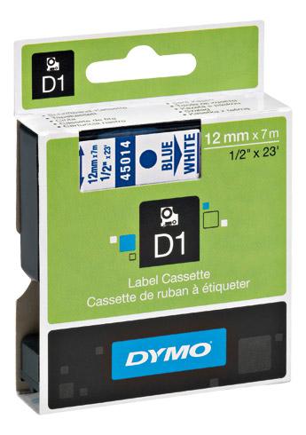 RUBAN POLYESTER DYMO D1 12 MM S0720540 FOND BLANC ÉCRITURE BLEUE