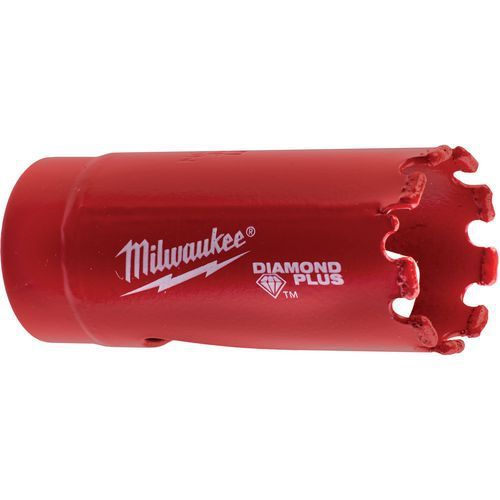 Scie cloche Diamond Plus™ Milwaukee Spécialement conçus pour les professionnels qui ont besoin de forer dans des matériaux extrêmement durs tels que la porcelaine / grès / carrière, les matériaux en fer ou en fibre de verre, où il est plus difficile de percer avec des scies trépans classiques. Eau : Ces scies trépans nécessitent un approvisionnement limité en eau contrairement aux foreuses diamant classiques qui nécessitent un débit d’eau continu. Il suffit de tremper la mèche dans l’eau au début de chaque trou à percer durant 5 secondes. Trous propres : Les perceuses forment des trous nets et précis. Durée de vie: pour assurer une longue durée de vie, nous utilisons un diamant de haute qualité pour une coupe rapide. Scie cloche Diamond Plus™