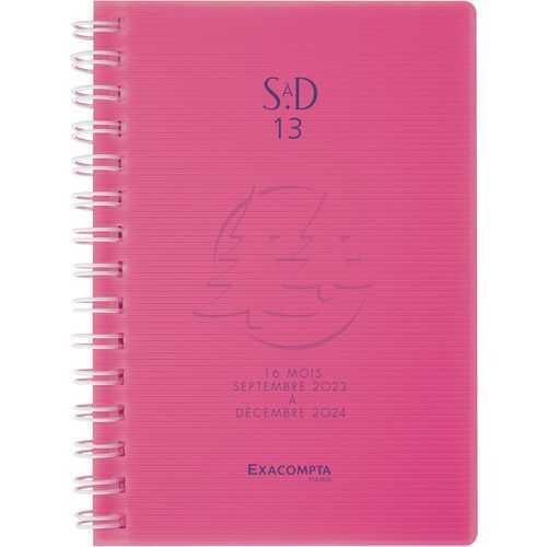 Semainier poche SAD 13W Linicolor Sept 2023/déc 2024 Exacompta Coloris : Rose Couverture coloris : Rose Épaisseur : 13 mm Imprim’Vert : oui Largeur : 95 mm Longueur : 130 mm Mise en page agenda : 1 semaine sur 2 pages Nb de pages : 160 Papier coloris : Beige Période d'utilisation : Septembredécembre Poids : 75 g Sans COV : oui Sélection télétravail : oui Type de reliure : À spirale Agenda de poche SAD 13W Linicolor 9 x 13 cm Semainier Septembre 2023 à Décembre 2024 16 mois. L'incontournable translucide. La semaine sur 2 pages à la verticale, vision de la semaine d'un seul coup d'oeil, large amplitude horaire du lundi au vendredi (7h à 22h), espaces de notes pour le samedi et le dimanche. Edition multilingue. Couverture en polypro translucide rainé, spirale extérieure pour une ouverture pratique à plat et à 360 degrés. Les plus : impression en bleu et gris sur papier ivoire Clairefontaine, reconnu pour sa qualité et pour permettre une écriture douce et fluide coins détachables, pour pouvoir accéder rapidement au jour en cours indication du numéro de semaine pour se repérer plus facilement. Pages spécifiques : vacances scolaires un planning de l'année en cours et celui de l'année suivante les fêtes à souhaiter. Semainier poche SAD 13W Linicolor, Couverture coloris: Rose, Mise en page agenda: 1 semaine sur 2 pages, Période d'utilisation: Septembredécembre, Type de reliure: À spirale, Largeur: 95 mm, Coloris: Rose, Épaisseur: 13 mm, Longueur: 130 mm, Nb de pages: 160, Papier coloris: Beige, Poids: 75 g, Imprim’Vert: oui, Sans COV: oui, Sélection télétravail: oui