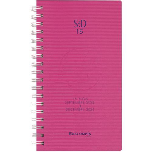 Semainier poche SAD 16W Linicolor Sept 2023/déc 2024 Exacompta Coloris : Rose Couverture coloris : Rose Épaisseur : 13 mm Imprim’Vert : oui Largeur : 95 mm Longueur : 160 mm Mise en page agenda : 1 semaine sur 2 pages Nb de pages : 160 Papier coloris : Beige Période d'utilisation : Septembredécembre Poids : 90 g Sans COV : oui Sélection télétravail : oui Type de reliure : À spirale Agenda de poche SAD 16W Linicolor 9 x 16 cm Semainier Septembre 2023 à Décembre 2024 16 mois. L'incontournable translucide. La semaine sur 2 pages à la verticale, vision de la semaine d'un seul coup d'oeil, large amplitude horaire du lundi au vendredi (7h à 22h), espaces de notes pour le samedi et le dimanche. Edition multilingue. Couverture en polypro translucide rainé, spirale extérieure pour une ouverture pratique à plat et à 360 degrés. Les plus : impression en bleu et gris sur papier ivoire Clairefontaine, reconnu pour sa qualité et pour permettre une écriture douce et fluide coins détachables, pour pouvoir accéder rapidement au jour en cours indication du numéro de semaine pour se repérer plus facilement. Pages spécifiques : vacances scolaires un planning de l'année en cours et celui de l'année suivante les fêtes à souhaiter. Semainier poche SAD 16W Linicolor, Couverture coloris: Rose, Mise en page agenda: 1 semaine sur 2 pages, Période d'utilisation: Septembredécembre, Type de reliure: À spirale, Largeur: 95 mm, Coloris: Rose, Épaisseur: 13 mm, Longueur: 160 mm, Nb de pages: 160, Papier coloris: Beige, Poids: 90 g, Imprim’Vert: oui, Sans COV: oui, Sélection télétravail: oui