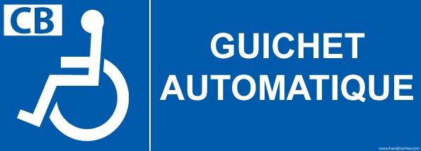 - Panneau signalétique ''Guichet automatique'' Existe en 2 matériaux et 3 dimensions Facile et rapide à poser. Ce pictogramme permet d'indiquer les distributeurs de billet et guichets automatiques adapté aux personnes en situation de handicap et aux PMR Idéal dans toutes les banques, bureaux de Poste Caractéristiques : Matériau : PVC ou vinyle adhésif Réflexion : Non-réfléchissant Se colle en extérieur ou intérieur, pour la version PVC et intérieur pour le vinyle Choix entre 3 dimensions: 210 mm x 75mm/ 350 x 125 mm/ 700 x 250 mm. Rappel de la loi:Pour etre conforme à la réglementation Accessibilité Handicap, la signalisation doit etre:- Visible: la lecture doit pouvoir se faire en position debout ou assise. Si le panneau est placé à moins de 2,2 m de hauteur, on doit pouvoir s'en approcher à au moins 1 m.- Lisible: le contraste des couleurs du panneau doit etre suffisant. La taille des caractères doit assez grande (4.5mm minimum, 15mm pour une information d'orientation)- Compréhensible: on utilise un pictogramme normalisé si il en existe.