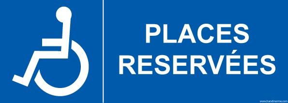 - Panneau signalétique ''Places réservées avec pictogramme'' Facile et rapide à poser.Ce pictogramme permet d'indiquer les places reservées adaptés pour les personnes de situation de handicap titulaires de la carte ''Carte Mobilité Inclusion'' ou la carte ''Carte de stationnement pour personne handicapé''Idéal dans tous lieux publics recevant du public (ERP), parking d'entreprise, parking d'hôtel... Caractéristiques :Matériau : PVC ou vinyle adhésifRéflexion : Non-réfléchissantSe colle en extérieur ou intérieur, pour la version PVC et intérieur pour le vinyle Choix entre 3 dimensions: 210 mm x 75mm/ 350 x 125 mm/ 700 x 250 mm.Rappel de la loi:Pour etre conforme à la réglementation Accessibilité Handicap, la signalisation doit etre:- Visible: la lecture doit pouvoir se faire en position debout ou assise. Si le panneau est placé à moins de 2,2 m de hauteur, on doit pouvoir s'en approcher à au moins 1 m.- Lisible: le contraste des couleurs du panneau doit etre suffisant. La taille des caractères doit assez grande (4.5mm minimum, 15mm pour une information d'orientation)- Compréhensible: on utilise un pictogramme normalisé si il en existe.