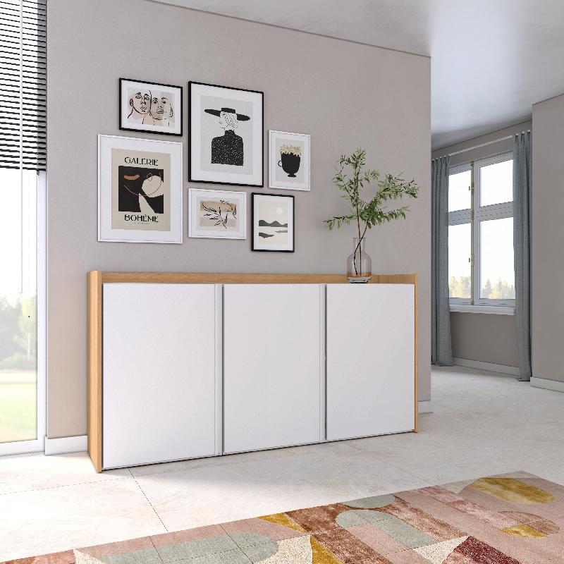 SKRAUT HOME - BUFFET EFFET BOIS BLANC ET CHÊNE 156X35X80CM