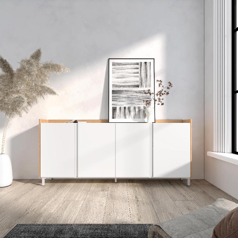 Descriptif du produit :Module à 2 portes, grande capacité de rangement. Charnières avec fermeture soft. Poignées en aluminium. Dimensions du module: 104 cm. de largeur, 80 cm. de hauteur, 35 cm. de profondeur. Couleur blanc mat et chêne clair avec veinures en bois poreux de haute qualité. Pied de 10,5 cm réglable en hauteur. Couleur blanche.