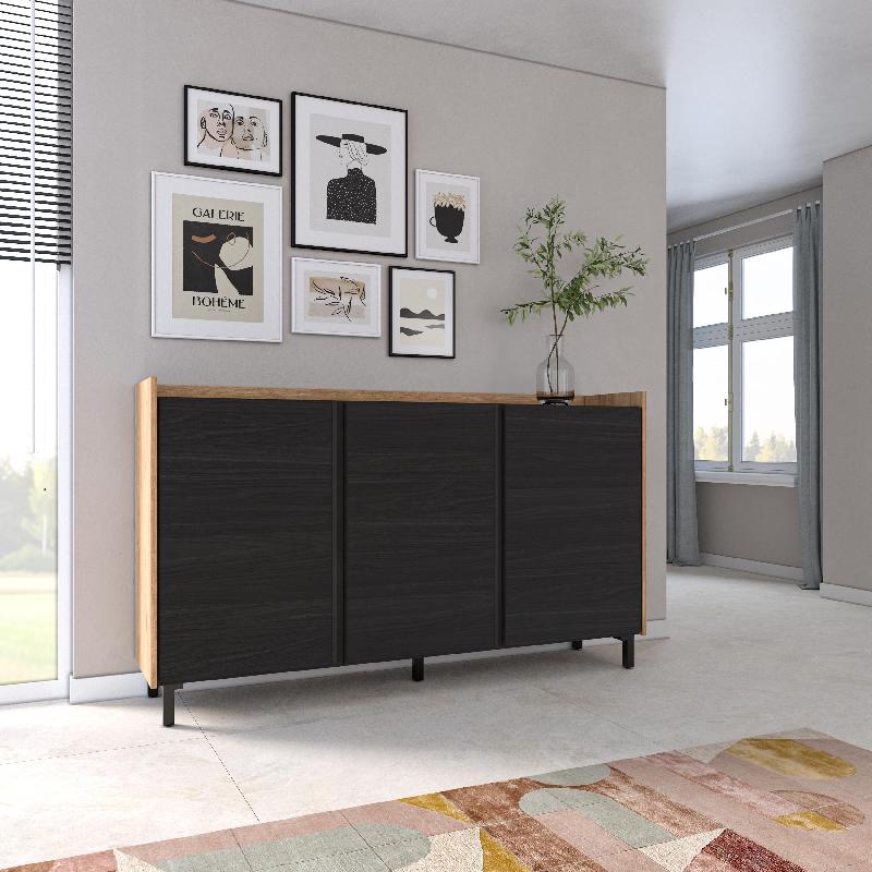 Descriptif du produit :Module à 2 portes, grande capacité de rangement. Charnières avec fermeture soft. Poignées en aluminium. Dimensions du module: 104 cm. de largeur, 80 cm. de hauteur, 35 cm. de profondeur. Couleur Noir et chêne avec un veinage du bois poreux au touché de haute qualité. Module avec porte et étagère intérieure de séparation. Charnières avec fermeture soft. Poignées en aluminium. Dimension ...