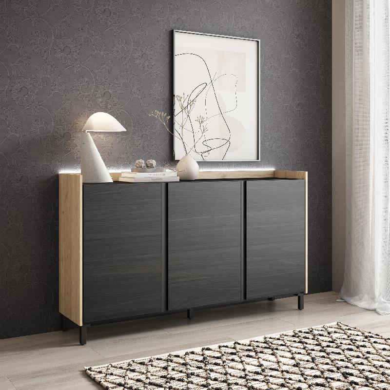 SKRAUT HOME - BUFFET EFFET BOIS NOIR ET CHÊNE 156X35X91CM AVEC PIEDS