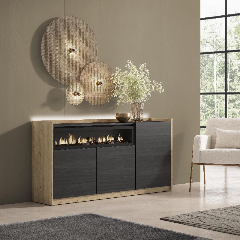 Module à 2 portes, grande capacité de rangement. Charnières avec fermeture soft. Dimensions du module: 104 cm. de largeur, 80 cm. de hauteur, 37 cm. de profondeur. Couleur Noir et chêne avec un veinage du bois poreux au touché de haute qualité.