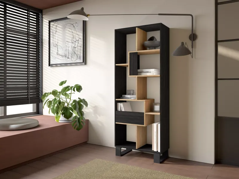 Descriptif du produit :Pieds en métal de style industriel. Dimensions: 12cm de hauteur, 8cm. Largeur, 33cm. Profondeur. Couleur noire. Étagère, bibliothèque multi-positions de design, idéale pour toutes les pièces de la maison. Montage horizontal ou vertical. Structure couleur noire avec grain de bois poreux de haute qualité. Dimensions: 162x67x31 cm. Étagères intérieures couleur chêne avec grain de bois p ...