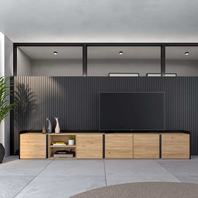 SKRAUT HOME - MEUBLE TV, BANC TéLé, 310X35X50CM, POUR LES TV JUSQU'à 80", MEUBLES DE SALON, CHêNE ET NOIR