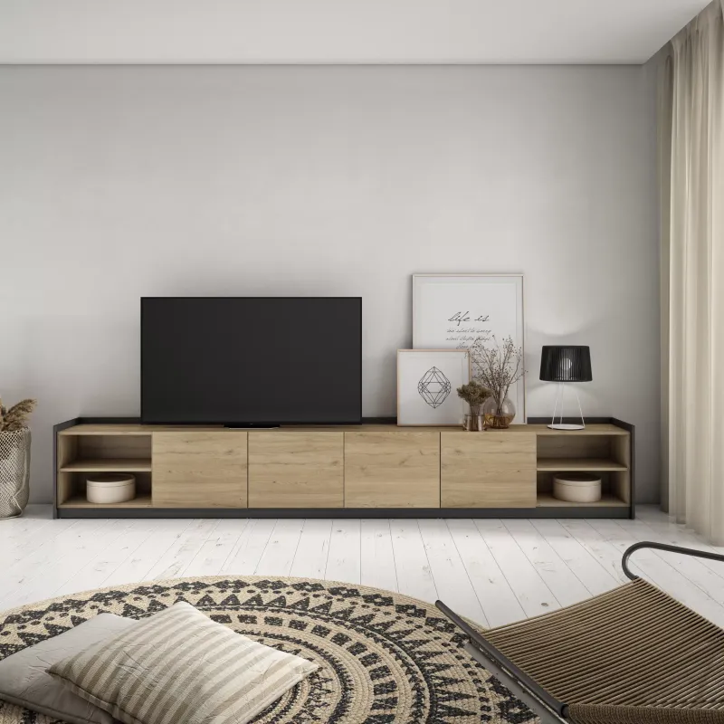 SKRAUT HOME - MEUBLE TV, BANC TéLé, 310X37X50CM, POUR LES TV JUSQU'à 80", MEUBLES DE SALON, CHêNE ET NOIR