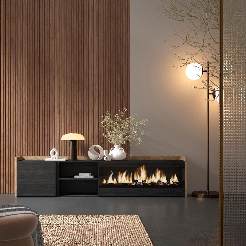 Descriptif du produit :Module TV avec espace de rangement pour vos appareils électroniques et porte rabattable. Charnières avec fermeture soft. Poignées en aluminium. Dimensions du module: 103 cm. de largeur, 50 cm. de hauteur, 35 cm. de profondeur. Couleur noir et chêne avec un veinage du bois poreux au touché de haute qualité. Module TV avec ouverture. Dimensions du module : 109 cm de largeur, 50 cm de hauteur, ...
