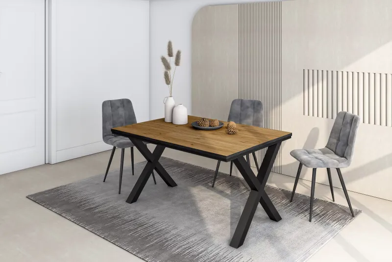 Descriptif du produit :Table à manger fabriquée avec un plateau en mélamine de haute qualité de 30 mm. Couleur chêne et noir avec un grain de bois poreux de haute qualité. Idéale pour les réunions de famille, elle est également parfaite pour les fêtes et les événements. Cette table multifonctionnelle peut également être utilisée comme table de travail, bureau ou table d'appoint dans votre salon, grâce à ...