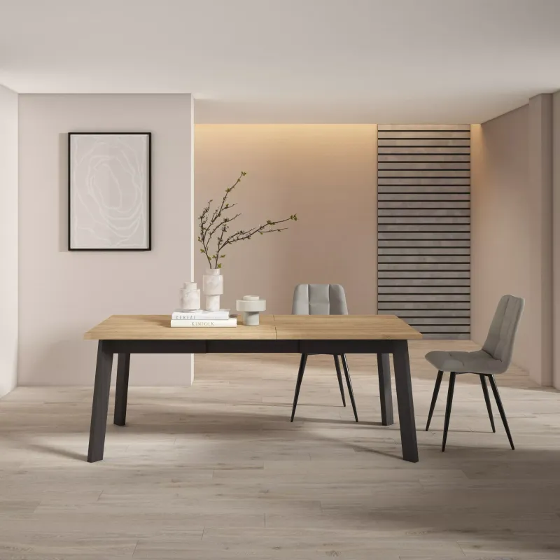 SKRAUT HOME - TABLE À MANGER, MEUBLE SALLE À MANGER, 194X90X74CM, POUR 10 PERSONNES, PIEDS EN BOIS, CHÊNE ET NOIR