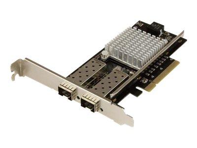 Ajoutez deux slots 10GbE SPF+ à votre poste de travail ou votre serveur pour une connectivité rapide, à large bande passanteChipset Intel 82599 avec technologie de virtualisation Intel pour la connectivitéBande passante de jusqu'à 20 Gb/s (Full duplex) par port Ajoutez deux ports fibre optique 10 Gigabit Ethernet (10 Gb/s par port) au moyen du transcepteur SFP+ de votre choix couplés à votre poste de travail ou votre serveur