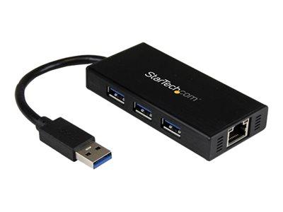 Le concentrateur USB 3.2 Gen 1 portable ST3300GU3B est équipé d'un port GbE permettant d'étendre la connectivité d'un ordinateur portable par l'ajout de trois ports USB 3.2 Gen 1 externes et d'un port réseau Gigabit au moyen d'une seule connexion USB 3.2 Gen 1.