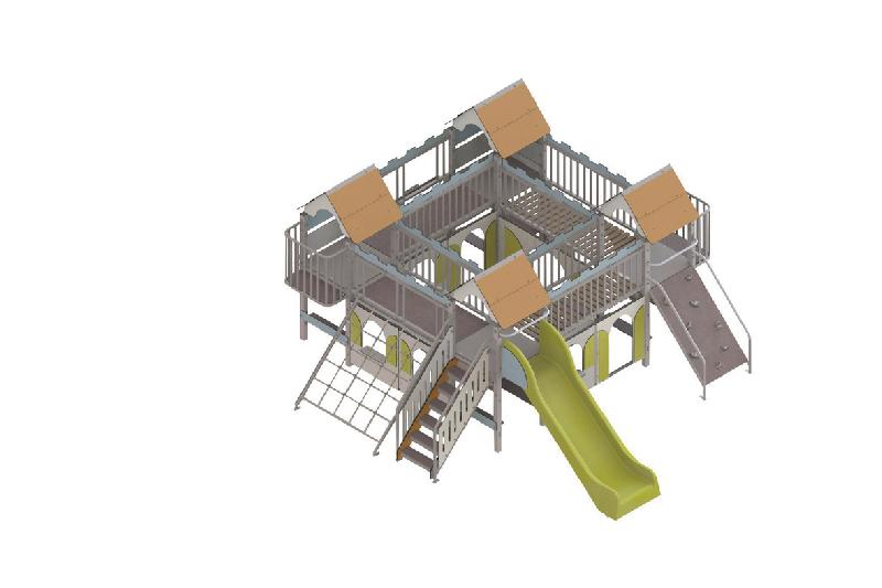 Poteaux et traverses en métalPanneau en HPLPlancher, rampe et marches en panneau multiplis revêtu d’un film antidérapantEléments métalliques en acier revêtus d’une laqueFixations au sol en acier galvaniséVisserie inox et zinguéeJeu conçu en référence à la réglementation ainsi qu’aux normes de la série NF EN 1176 et 1177