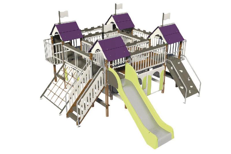STRUCTURE CITADELLE 4 TOURS COMPLÈTE - BOIS- SCELL - INOX - GRIS/PRUNE-WIKI CAT - MANUTAN COLLECTIVITÉS