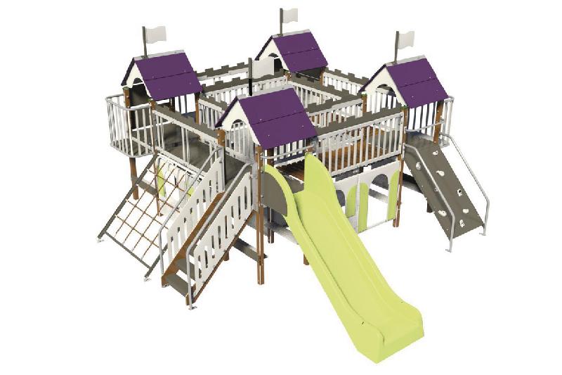 STRUCTURE CITADELLE 4 TOURS COMPLÈTE- BOIS - SCELL - POLY - GRIS/PRUNE-WIKI CAT - MANUTAN COLLECTIVITÉS