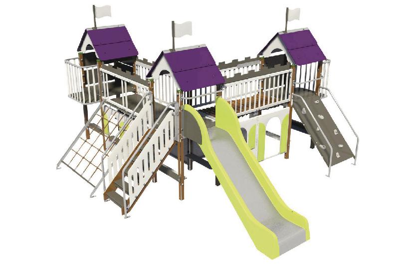 Descriptif du produit :Poteaux et traverses en pin massif traité autoclave classe IV avec 2 couches de lasure.Section 7 x 7 cmPanneau en HPLPlancher, rampe et marches en panneau multiplis revêtu d’un film antidérapantEléments métalliques en acier revêtus d’une laqueFixations au sol en acier galvaniséVisserie inox et zinguéeJeu conçu en référence à la réglementation ainsi qu’aux normes de la série NF ...