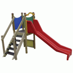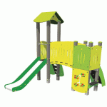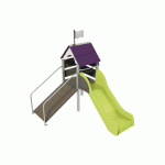 Descriptif du produit :Tourelle L/l/H 80 x 80 x 160 cm. 4 montants en bois section 70 x 70 mm avec toit et panneau de protection en bi-laminé stratifié HPL (compact).Escalier de remonte avec panneaux de protection bi-laminé stratifié HPL .Espalier avec barreaux en iroko Ø 45 mm .Filet de grimpe en corde armée.Toboggan glissière fibre de verre haut 100 cm.Eléments cache écrous en nylon coloré.Structure en pin d ...