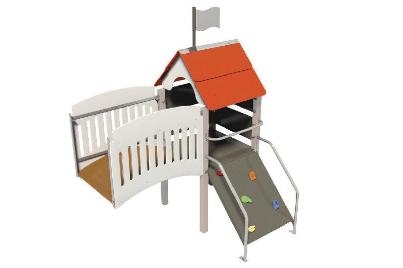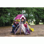 Descriptif du produit :Les éléments sont composés en HPL et métal de coloris attrayants, conçus pour l’extérieur en crêche, halte-garderie, école maternelle, aires de jeux, etc.Elle est composée d’une tour avec toit protégeant du soleil. Un passage, un petit mur si le module de base est une Fripounette GLISSE.