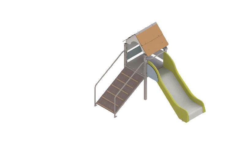 Poteaux et traverses en métalPanneau en HPLPlancher, rampe et marches en panneau multiplis revêtu d’un film antidérapantEléments métalliques en acier revêtus d’une laqueFixations au sol en acier galvaniséVisserie inox et zinguéeJeu conçu en référence à la réglementation ainsi qu’aux normes de la série NF EN 1176 et 1177