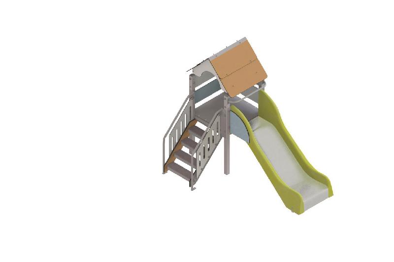 Poteaux et traverses en métalPanneau en HPLPlancher, rampe et marches en panneau multiplis revêtu d’un film antidérapantEléments métalliques en acier revêtus d’une laqueFixations au sol en acier galvaniséVisserie inox et zinguéeJeu conçu en référence à la réglementation ainsi qu’aux normes de la série NF EN 1176 et 1177