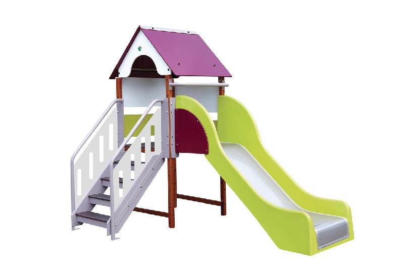 Poteaux et traverses en bois massif traité autoclave classe IV avec 2 couches de lasure coloris taupe.Section 7 x 7 cm.Panneau en HPLPlancher, rampe et marches en panneau multiplis revêtu d’un film antidérapantEléments métalliques en acier revêtus d’une laqueFixations au sol en acier galvaniséVisserie inox et zinguéeJeu conçu en référence à la réglementation ainsi qu’aux normes ...