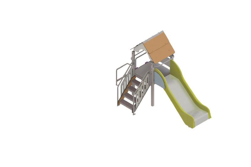 Poteaux et traverses en acier galvanisé laqué peint avec 2 couches de lasure coloris taupe. Section 70 x 70 mm.Panneau en HPLPlancher, rampe et marches en panneau multiplis revêtu d’un film antidérapantEléments métalliques en acier revêtus d’une laqueFixations au sol en acier galvaniséVisserie inox et zinguéeJeu conçu en référence à la réglementation ainsi qu’aux normes de la ...