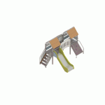 Poteaux et traverses en métalPanneau en HPLPlancher, rampe et marches en panneau multiplis revêtu d’un film antidérapantEléments métalliques en acier revêtus d’une laqueFixations au sol en acier galvaniséVisserie inox et zinguéeJeu conçu en référence à la réglementation ainsi qu’aux normes de la série NF EN 1176 et 1177