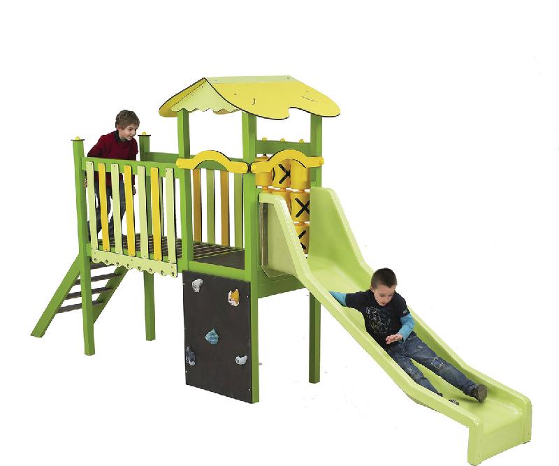 Descriptif du produit :Structure aluminium épaisseur 2 mm recyclable à vie revêtu epoxy polyester coloris vert. Eléments de décor en stratifié compact (HPL) coloris jaune et vert épaisseur 10 mm, sans entretien. Livré pré-monté avec notice et visserie d´assemblage en inox A2.Kit de dalles approprié vendu séparément (voir produit complémentaire).