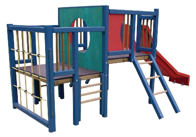 Descriptif du produit :Traitement autoclave sous pression, classe 4, solution aqueuse sans chrome ni arsenic.Visserie inox A2 pour l’assemblage des bois et visserie zinguée pour l’assemblagedes extrémités des cordes.Elément de décor : compact imputrescible.Hauteur de chute (les plateformes) : 0,70 m et 0,90 m.Hauteur de chute (filet d\'escalade) : 1,40 m.Hauteur de chute (sortie toboggan) : 1 m.