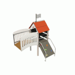 Descriptif du produit :1 tourelle avec montants en acier de section Ø 8,9 cm avec plateforme en tôle armée avec finition antidérapante. Un toit décoratif avec des panneaux en polyéthylène L/l/H : 100 x 100 x 355 cm.1 tourelle avec montants en acier de section Ø 8,9 cm avec plateforme en tôle armée avec finition antidérapante, des panneaux de protection en polyéthylène et un petit banc en polyéthylène. L/l ...