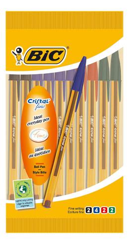 Descriptif du produit :- Pensés pour les amateurs d'écriture fine, ces 10 stylos-bille BIC Cristal Original Fine possèdent une pointe fine de 0,8 mm qui permet un écriture propre et précise, ou un dessin minutieux. Ils sont déclinés en 4 couleurs d'encre (bleu (x4), noir (x2), rouge (x2), vert (x2)) et leur corps orange translucide laisse voir le niveau d'encre. Faits pour durer, ces stylos écrivent en moyenne ...